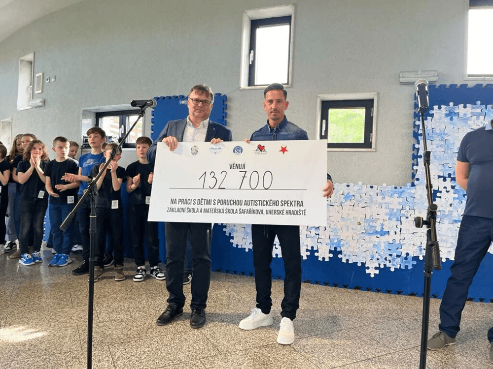V rámci utkání 26.kola FORTUNA:LIGA mezi 1.FC Slovácko a SK Slavia Praha, podpořili vzdělávání dětí s poruchou autistického spektra prostřednictvím kampaně AUTY pro AUTISTY.